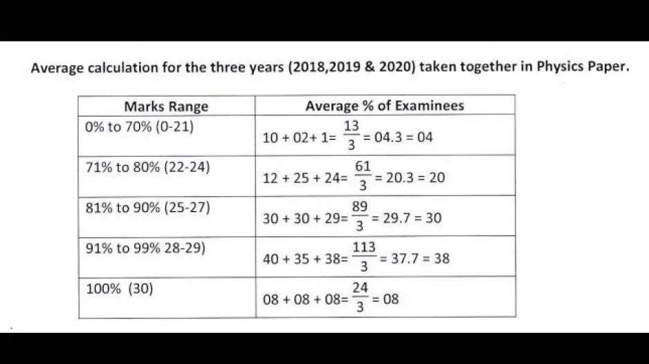 As per the official release, the calculation of the average percentage for a H.S. School/College named 'X' in Physics Practical Paper with 100 students for 2018, 120 students Ior 2079 & 126 students for 2020 is given below. This example will help in calculating the average percentage.