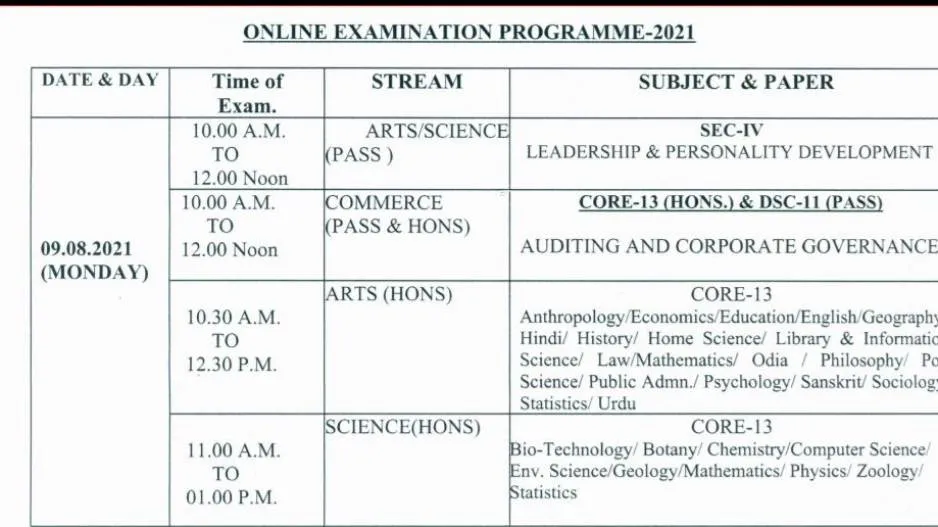 The Utkal University has announced the programme for the 6th Semester university examination of three-year degree (CBCS) course in Arts, Science and Commerce streams.