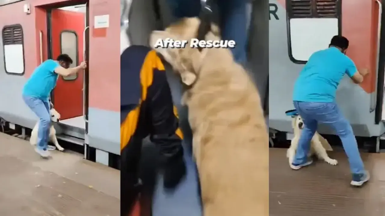 The incident reportedly took place at Jhansi Railway Station when a man was trying to board a moving Rajdhani Express train. In the short clip recorded by an onlooker, the man is seen trying to board the moving train while holding his pet dog, a Golden Retriever, tied to a leash. However, as the train gathered speed, the dog panicked and hesitated to jump into the coach.