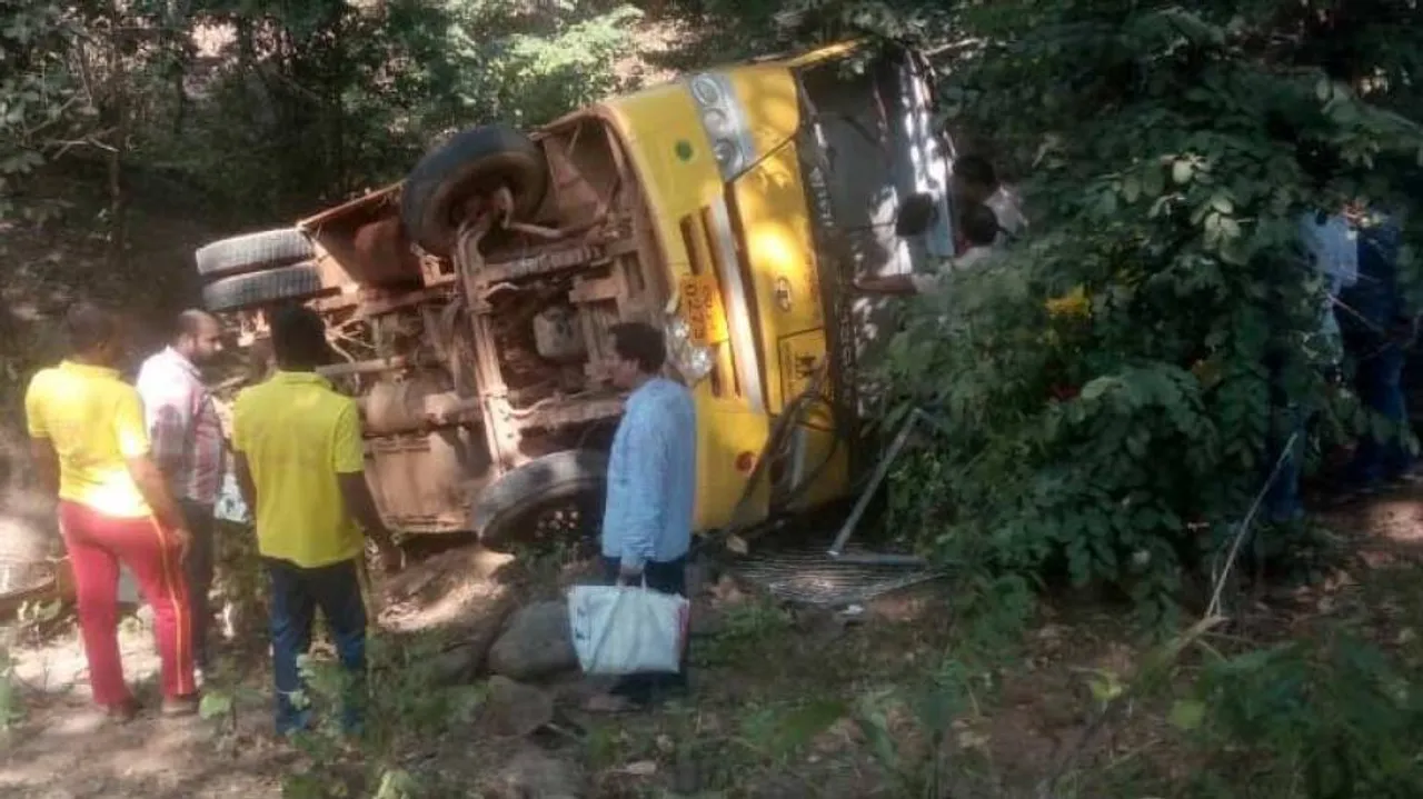 Nabarangpur: In an unfortunate incident, three people were killed and ten others sustained critical injuries after the school bus they were travelling in skidded off the road and fell into a gorge near Chandahandi in Jharigaon block of Nabarangpur district today.